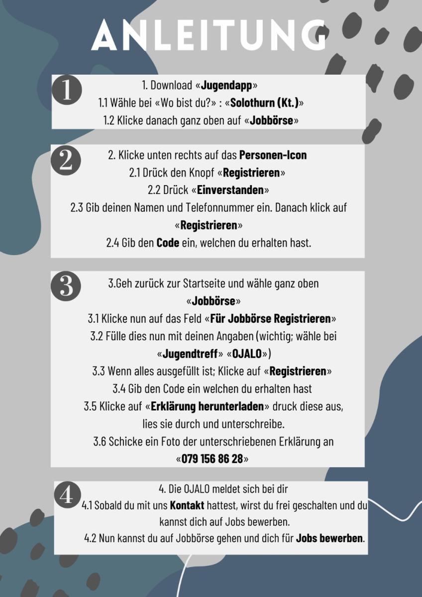 Die Sackgeldjobbörse ist ein Angebot der Offenen Jugendarbeit Lostorf/ Obergösgen, bei welchem angemeldete Jugendliche ab 13 Jahren über Gelegenheitsjobs auf dem Laufenden gehalten werden. Für Jugendliche ist dies nicht nur eine Plattform, um Geld zu verdienen, vielmehr ist es auch eine Chance, erste Erfahrungen in der Arbeitswelt zu sammeln. Zudem bietet es die Gelegenheit für Begegnungen und den Austausch unter verschiedenen Generationen und Lebenswelten.